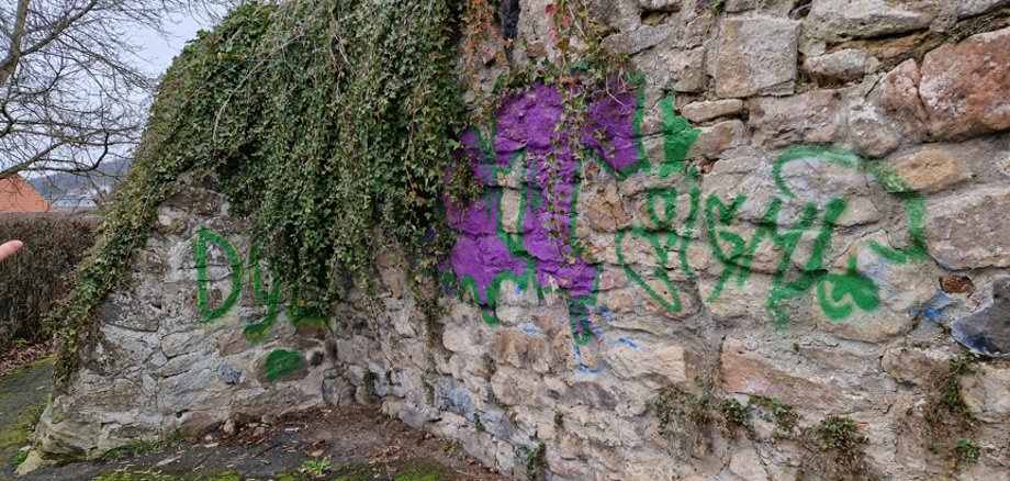 Am 04.12.2025 wurden an der historischen Stadtmauer in Neukirchen erhebliche Sachbeschädigungen durch Graffiti dokumentiert.