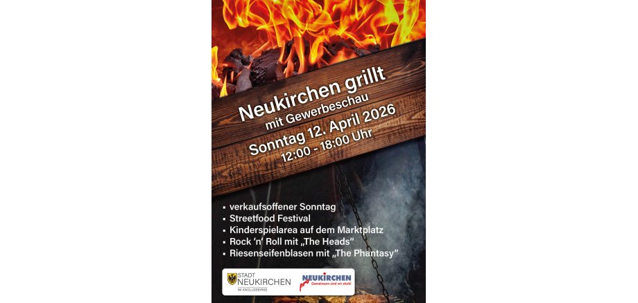 Vorankündigung "Neukirchen grillt mit Gewerbeschau" am 12. April 2026